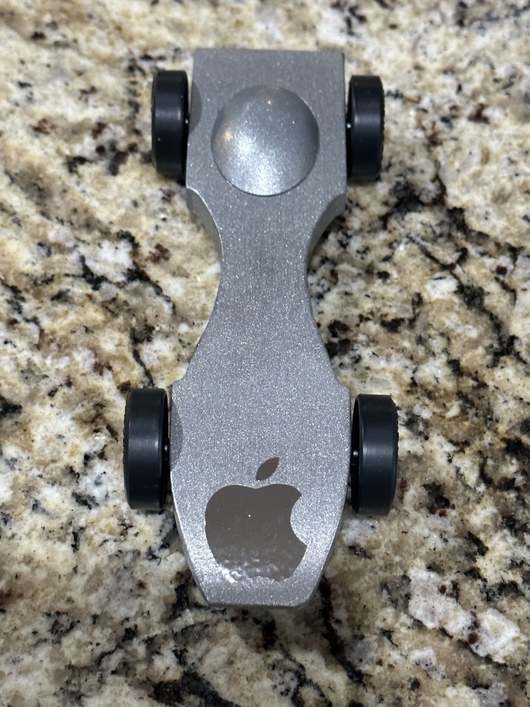 His winning car design for the 2023 Pinewood Derby was inspired by his love of technology, specifically Apple products. He enjoyed designing his car, the MACsparrin Racer, with help from his mom & dad.